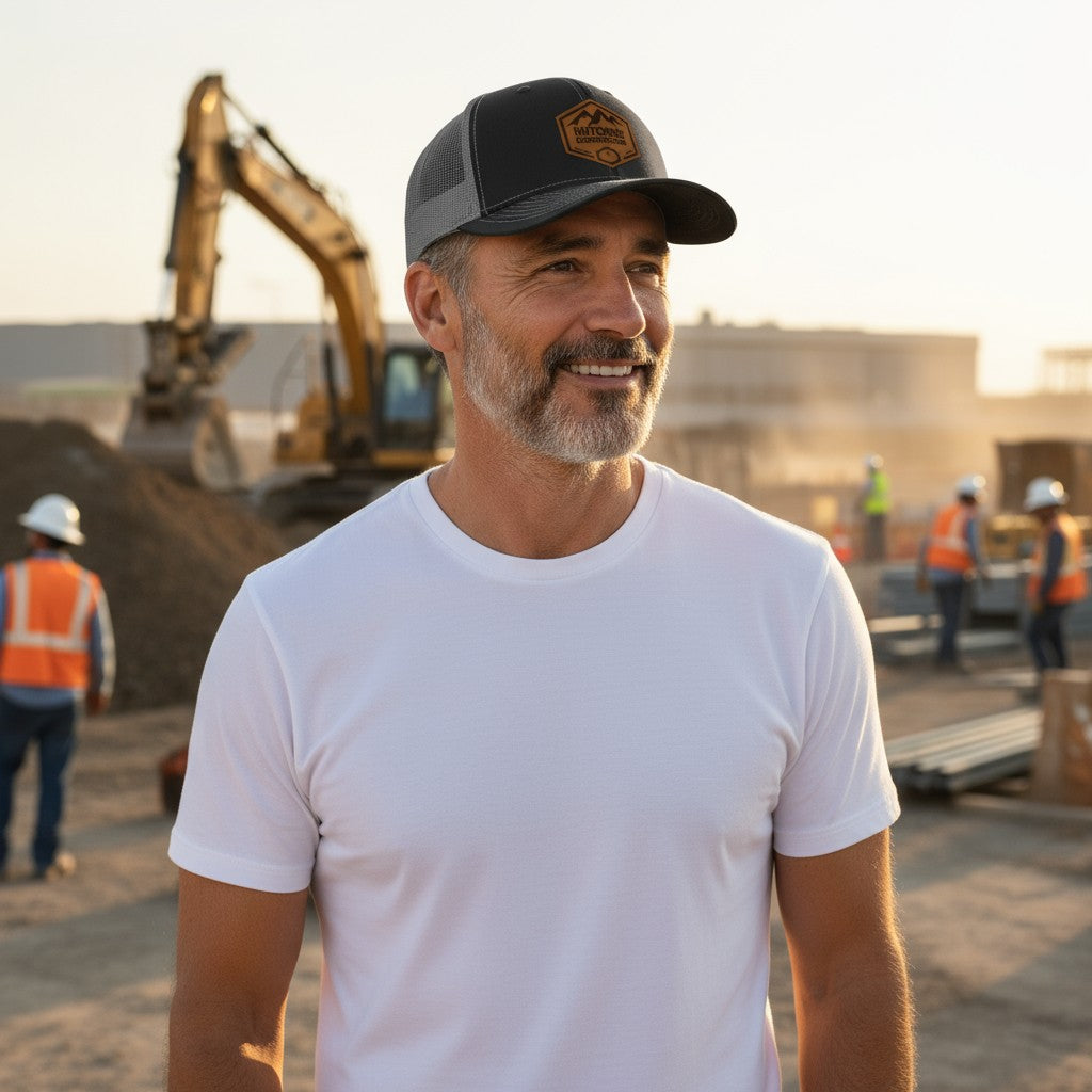The shop classic, leveled up. We start with the iconic Richardson 112, the cap that sets the standard for fit and durability and finish it with a rawhide leatherette patch with the Hutchins Construction logo for a clean, modern look that stands out.