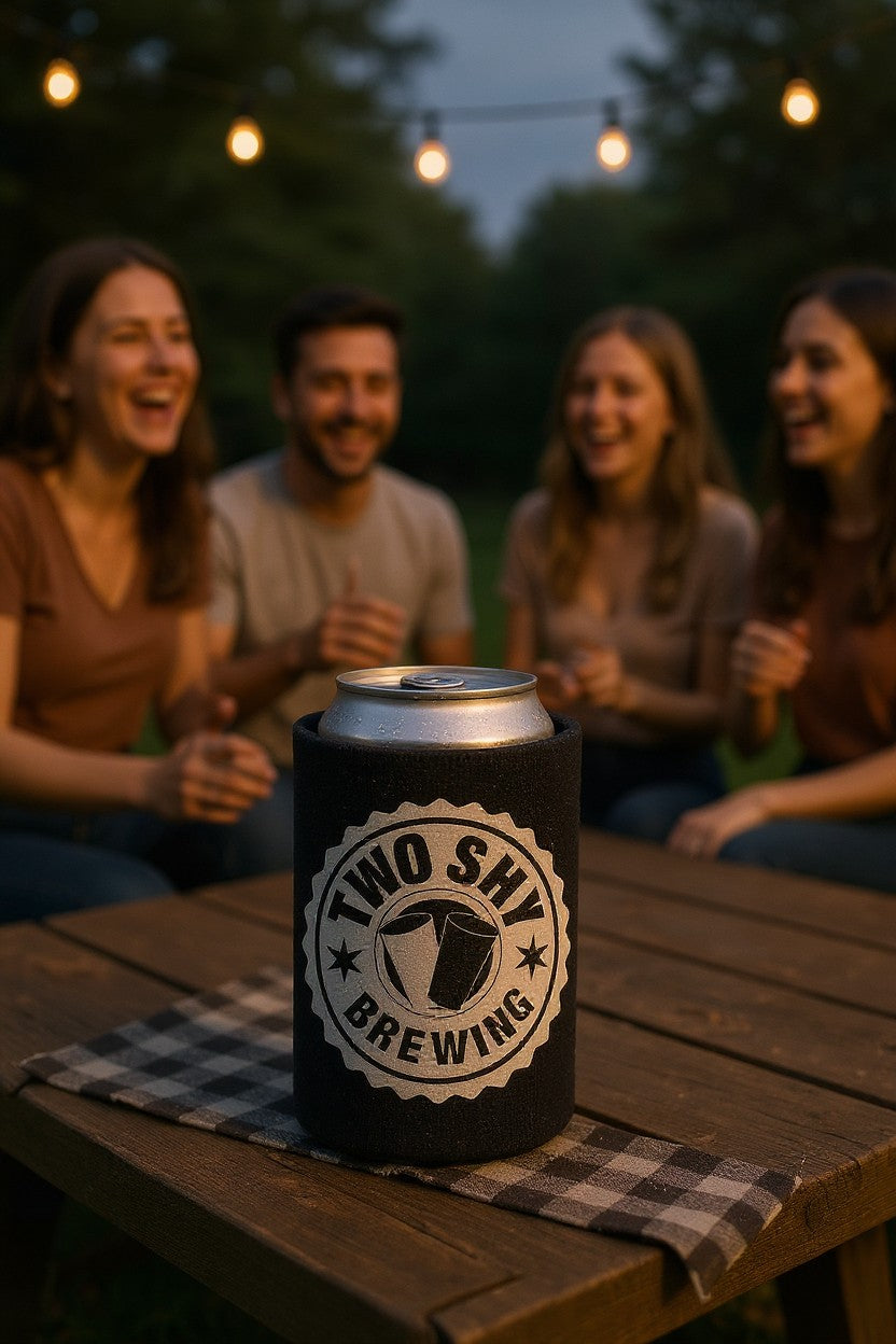 Keep your drinks cold and your hands dry with the Collapsible 12oz Can Cooler, printed with Two Shy's logo. Crafted from durable 3mm foam insulation, this cooler provides excellent temperature retention while folding flat for easy, space-saving storage when not in use.